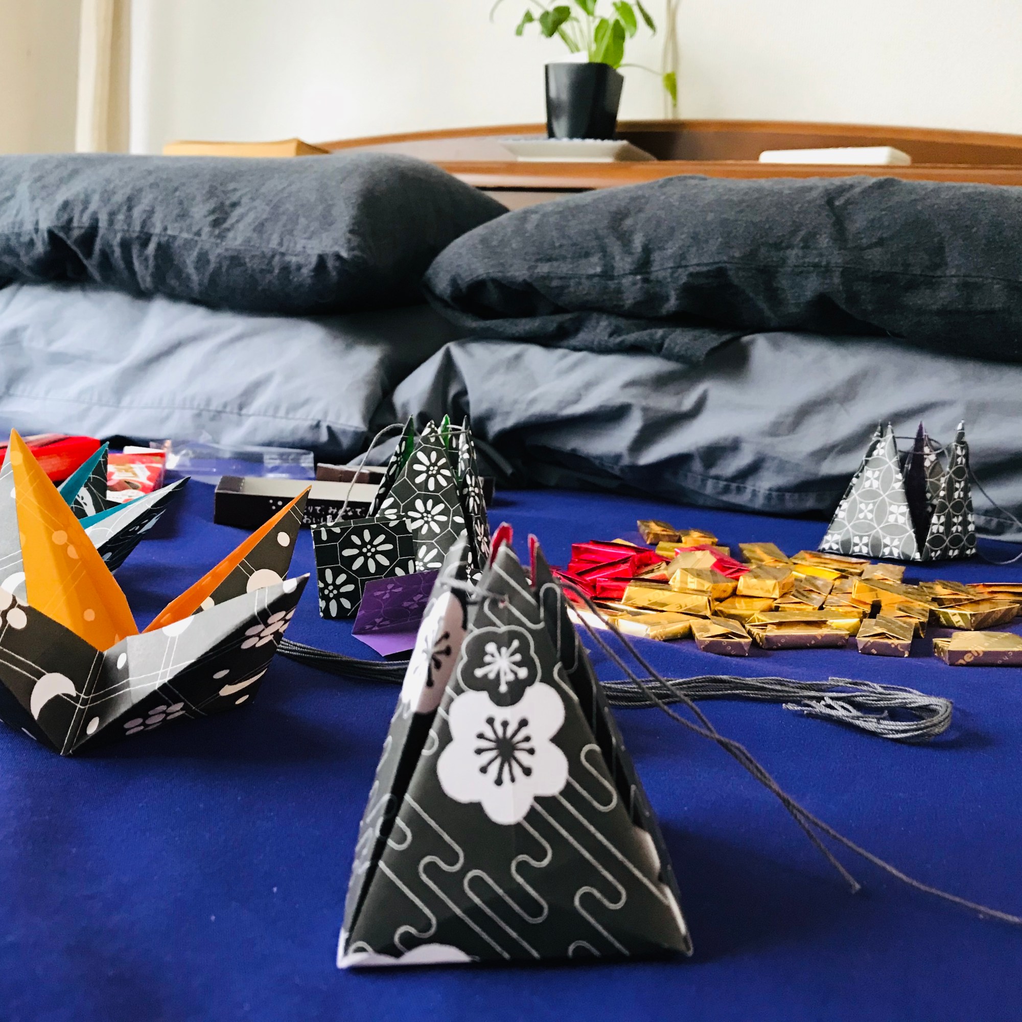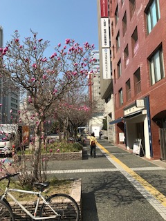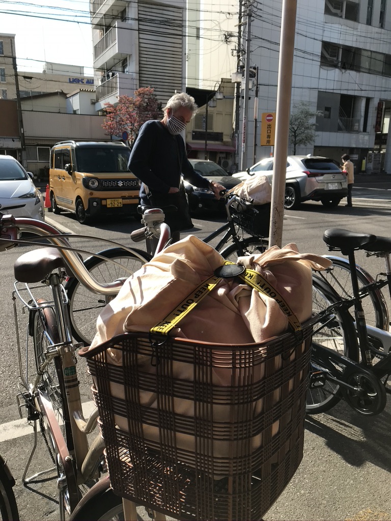 For now, from 13 April til 6 May we are on a break, our employer, ECC, cancelling classes for this period as part of the wider measures Japan has recommended to flatten the curve. The break is welcome. Cam and I are starting a routine of learning Japanese. More slowly, slowly. Today I made a face mask, double sided, pink cotton/grey and white striped seersucker. Cam is out looking for second hand bicycles, hoping that if we are able to stay in Japan we may also go exploring on wheels. We are eating more, trying to put on the weight we rapidly lost with our soup and salad diet and a schedule with few meal breaks. If that doesn’t work I am buying suspenders to keep my trousers up!