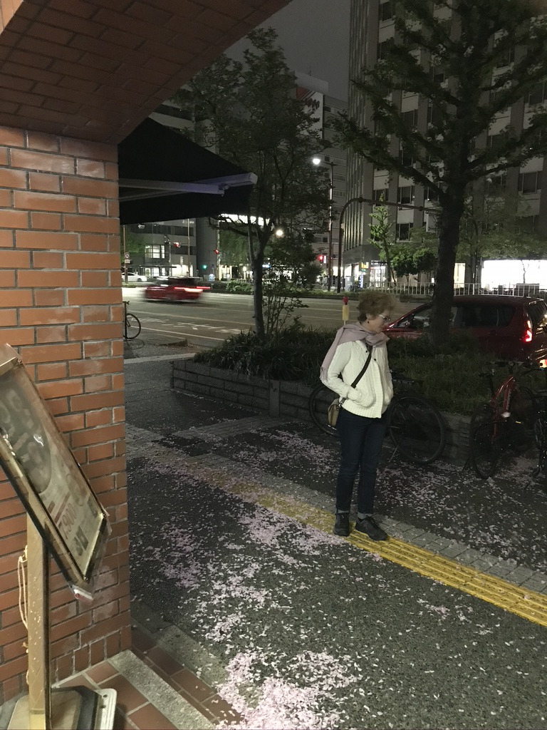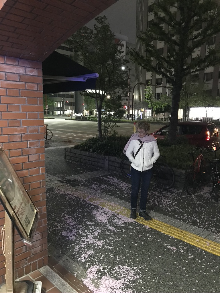 Outside our apartment. After pizza and gelato downtown. Not able to ignore the petals. Knowing, soon, they will be gone. And they will be missed.