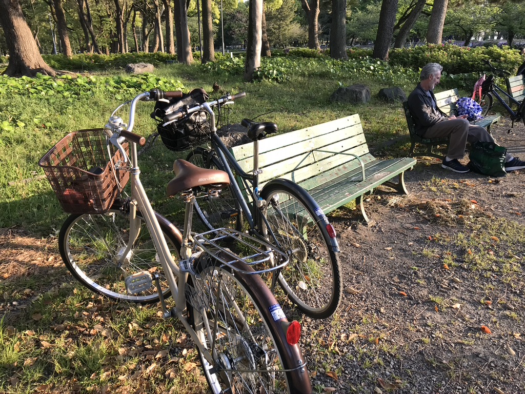 Suzuki and Mikiyo are both in their late 60’s.  They share the job of building superintendent at our modest, ageing apartment block.  Both had been friendly to us, saying hello and goodbye as we went in and out.  We needed to park our new (to us) second hand bikes in the building’s modest undercover parking area, and they were the guys to ask.  Seemed simple enough, I just needed to get past the language barrier, Susan having kindly allowed me to take on this task.  I spent an hour cobbling together a few sentences to make myself understood and set off down the lift to find the superintendent of the day.  I found Mikiyo sweeping leaves at the front of the building and, after opening the conversation with what was hopefully an observation about the weather, I launched into my possibly unintelligible request – a handful of nouns, demonstratives and verbs that made perfect sense on google translate.